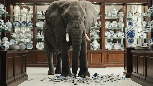 Elephant in the china shop. A concept of being awkward and clumsy. Damage in situations requiring great care and sensitivity