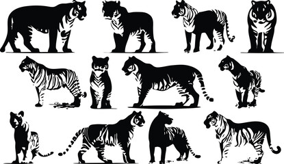 Set of black mouse silhouettes in various poses, rat vector illustration, rodent animal icon design, wildlife clipart for graphics