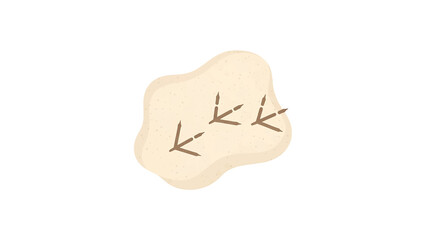 Illustration of three distinct bird footprints embedded in a light brown, sandy patch on a white background