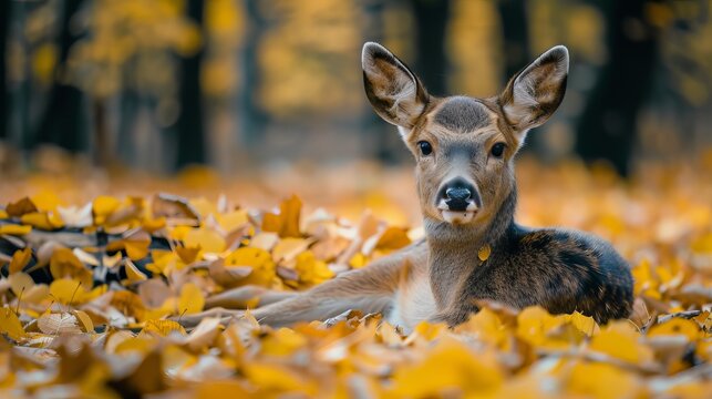 Two adorable squirrels in colorful orange autumn forest. Two Squirrels are in the forest and one of them is eating nuts. Fall season cute wildlife