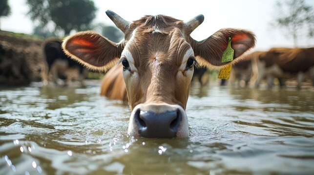 Group of cows eating hay in a rustic cowshed on a dairy farm with warm lighting