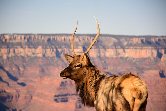 Young male wildlife photographer in brown cloths taking pictures of a red deer, cervus elaphus, stag roaring on a green meadow close to him. Tourist with camera recording wild animal.