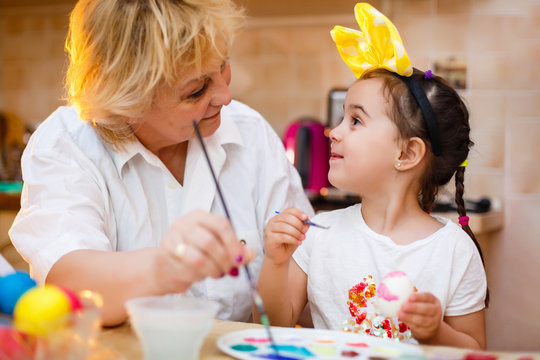Big ostrich egg on straw surround by quail eggs, copyspace