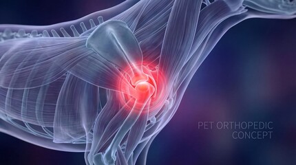 Detailed Veterinary Illustration of Canine Orthopedic Anatomy Highlighting Joint Pain