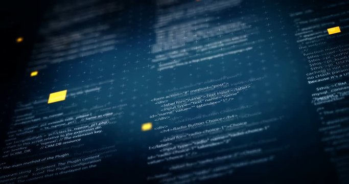 Abstract blue binary code on black. Changing program code from zero and one. Futuristic cyberspace, binary data, streaming code matrix background. Digital encryption, software coding and programming.