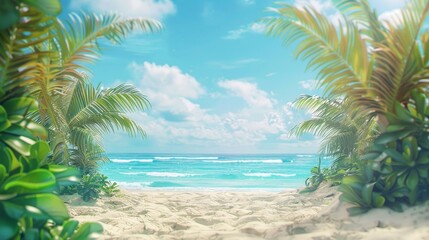 Summertime background in the beach decoration background. 3D Nature Sea Beach Background