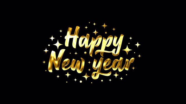 Happy New Year Handwritten Animated Text in Gold Color with Particles. Great for ceremonies, greetings, celebrations, banners and Flyer. Animated Happy New Year 2026