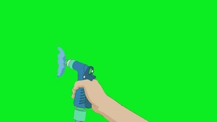2d animated cartoon A hand holding a high-pressure water hose that washes a device. Like a washing machine carwash... in green screen chroma key. 4K resolution.