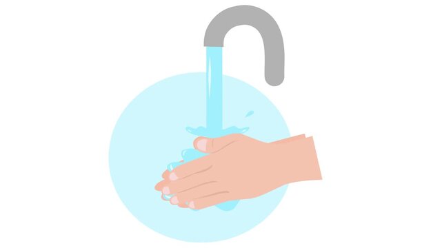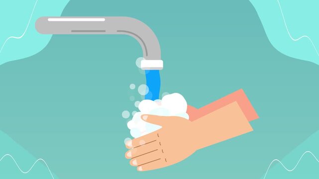 Washing hands cartoon video animation 2d. Hand washing with liquid soap and faucet
