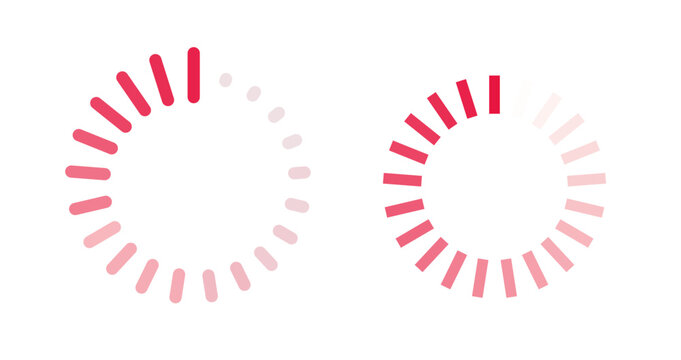 Rotating loader icon indicator vector graphic illustration set, downloading process red symbol, preloader turning circle bar image clipart