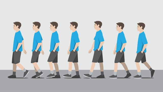 Traveler character model sheet, Character poses, expressions, Walk cycle, Run cycle animated character sequences.