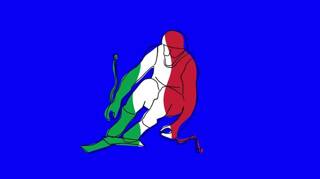 Loop able animation of hand drawn apline ski silhouette for winter sport games in italy with flag waving colors
