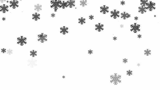 Snowflakes snowing 2D objects animation. Snowfall new year. Blizzard winter flat cartoon 4K video, transparent alpha channel. Snowstorm falling snow flakes animated elements on white background