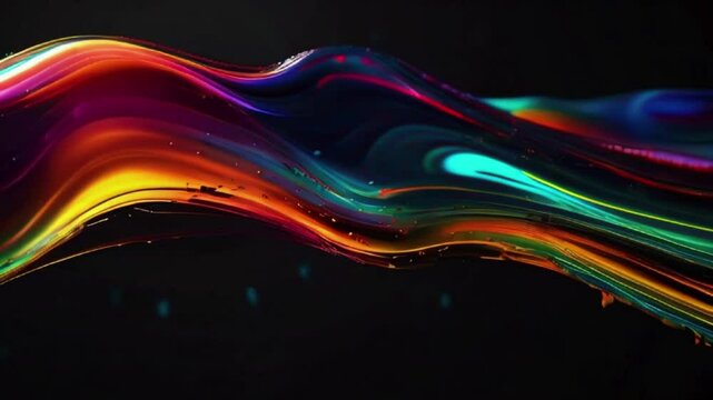 Abstarct morphing oil blob wallpaper. Illuminated shape. Black background and colourful glowing. Gradient chrome scratched texture. Seamless loop animation. 3D