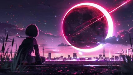 anime concept sky sunset landscape background eclipse, ai. anime animations. Animations