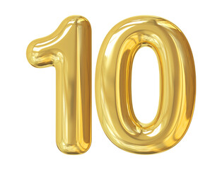 3d number 10 gold balloon
