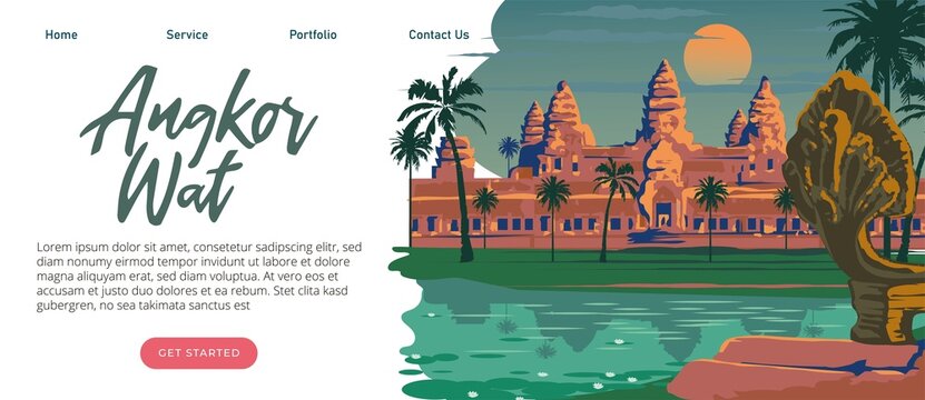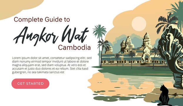 design for social networks and sites Cambodia with decorative background, landmarks, travel and tourist attraction, Angkor Wat, Siem Reap, Cambodia with decorative background
