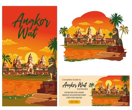 design kit Angkor Wat, Siem Reap, Cambodia with decorative background, landmarks, travel and tourist attraction