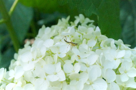 Hortensia Paniculata Annabel. White Flowers Closeup