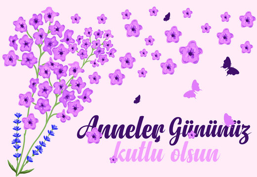 Happy Mother's Day greeting card.  Translation: Anneler günü kutlu olsun tebrik kartı.