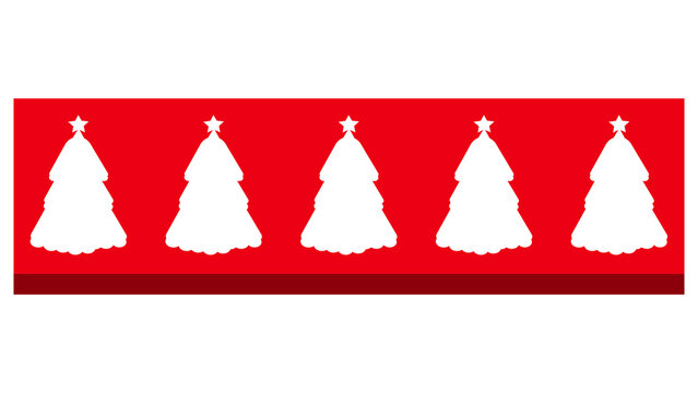 A  festive horizontal banner or label, a repeating pattern of five stylized white Christmas tree silhouettes, each topped with a small star