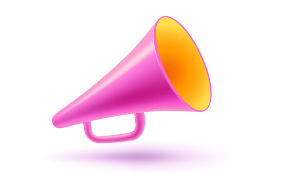 Vector vintage pink megaphone in realistic 3d style. Pink loudspeaker.