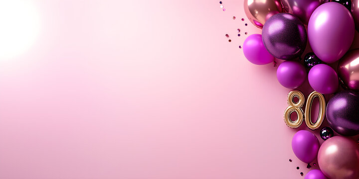pink background with balloons for 30 birthday festive celebration; plenty empty copy space