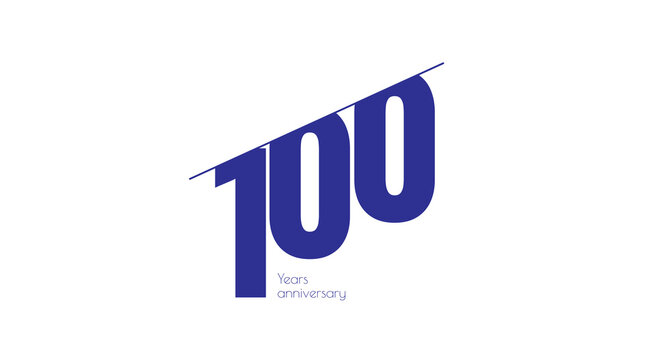 Celebrating 100 Years: A bold anniversary design with strong, blue typography emphasizing a century of achievement.