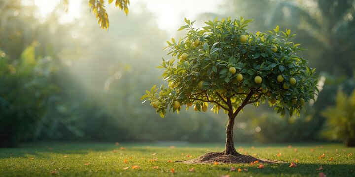 Custard apple tree showing fresh foliage and developing fruit, highlighting orchard renewal,