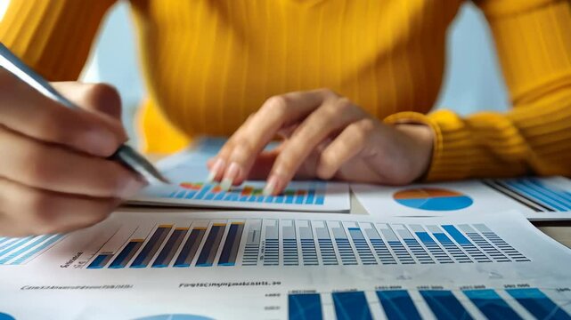 Charting Financial Analysis: A close-up view showcases a focused individual meticulously reviewing and annotating financial charts, emphasizing the meticulous process of data interpretation.
