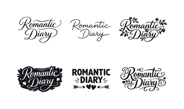 Romantic Lettering Variations. Romantic diary annotation text. Set lettering. harmonious lettering variations of the same emblematic concept, each with