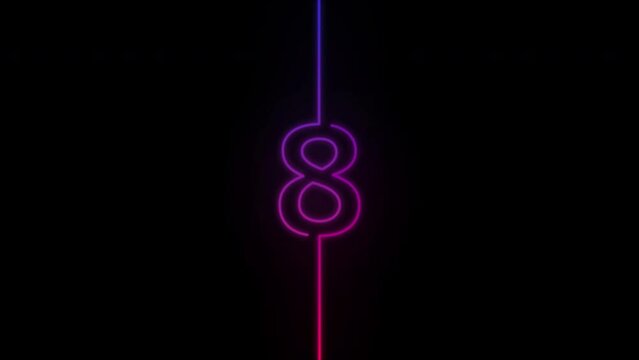 Top ten countdown animation text , neon light numbers from 10 to 1 on black background. 4k video