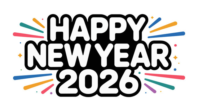 Happy New Year 2026 Celebration: A vibrant and celebratory design announces the arrival of 2026, radiating with joy, hope, and the promise of a fresh start. A cheerful and eye-catching graphic.