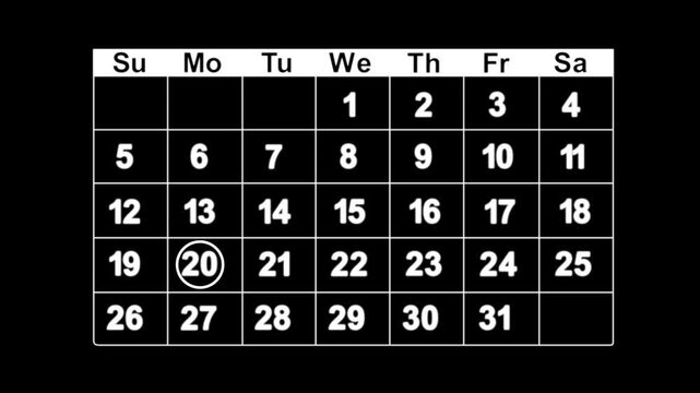 Businessman manages time for Day 20th reminder on calendar with circle mark or paint stain/ Ink bloom on date in work planning. Highlighting date number 20 on a calendar, Very important date calendar.