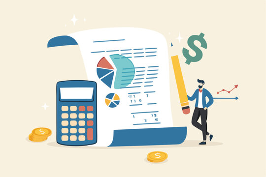 Budget and financial planning concept. Annual income and cost estimate. Project cost estimation, calculate budget or resources to finish work, financial plan, invoice or tax.
