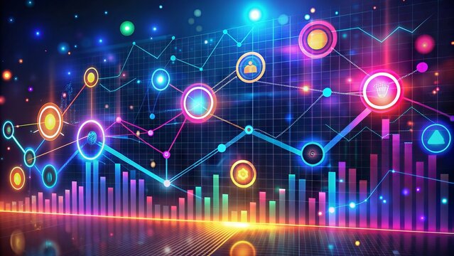 Diagrams, financial figures. Abstract glowing forex chart interface wallpaper. Investment, trade, stock, finance