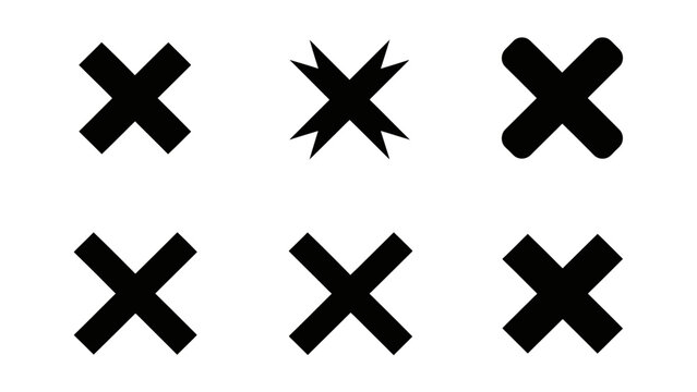 Collection of Six Distinct Black Cross Marks and X Symbols on White Background