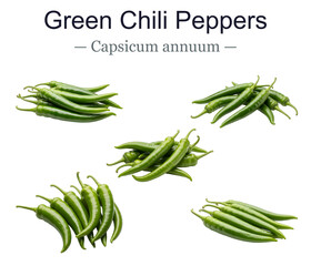A close up professional photograph of fresh green chili peppers Capsicum annuum displayed on a clean white background ideal for healthy recipes and culinary projects