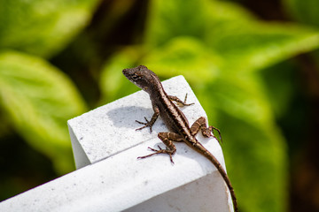 The lizard  Northern Green Anole (Anolis carolinensis carolinens