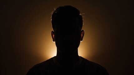 Silhouette of a hidden face in the shadow, male person, mystery, anonymity.