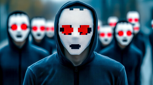 A shadowy figure is obscured by a screen of cascading binary code, representing the anonymity of online activities.