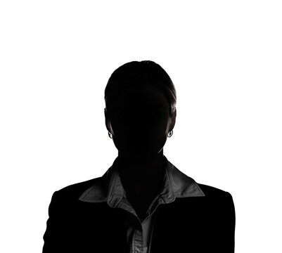 Anonymous person. Shaded portrait of woman on white background