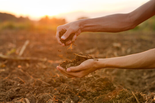 A hand of a man and another of a woman hold a passport. On a table in the background