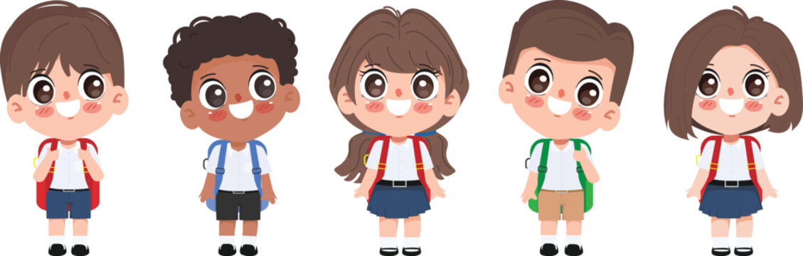 Cute cartoon student in uniform back to school character.
