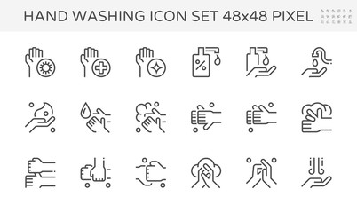 Hand wash step vector icon. To clean bacteria from skin, finger, wrist. Include soap, water for health, hygiene, prevent infection. Thin line ans editable stroke.