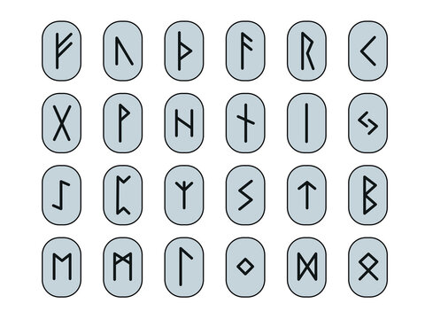 Set of Runes. Complete collection of Rune alphabet, futhark. Writing ancient Germans. Vector Mystical symbols.