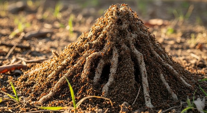 Ant Colony's March: A close-up view of an industrious colony of ants marching in a line, each tiny creature working together with precision and purpose.