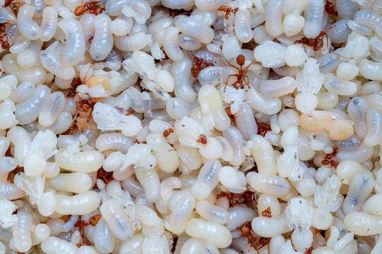 many ant eggs and ant baby,tropical traditional Thai food,selective focus point,macro