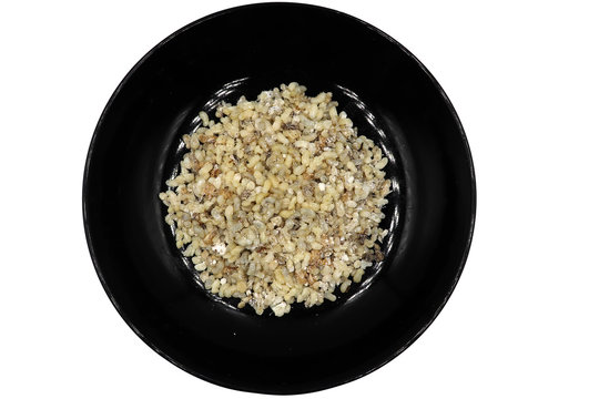 Close-up of red ant eggs in bowl