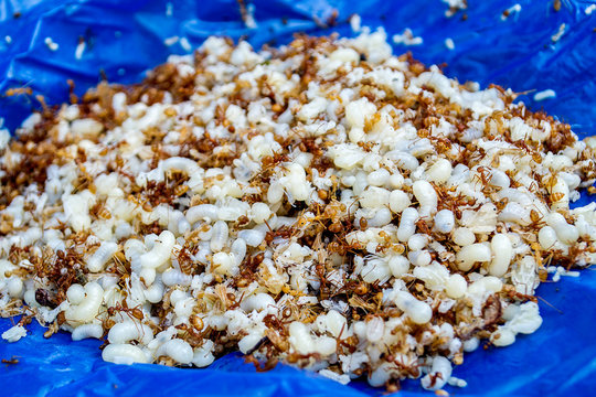 Raw Red ant eggs : are cooked in types of food such as Spicy Raw Ant Egg Salad. seems to be the most popular Thai dishes.